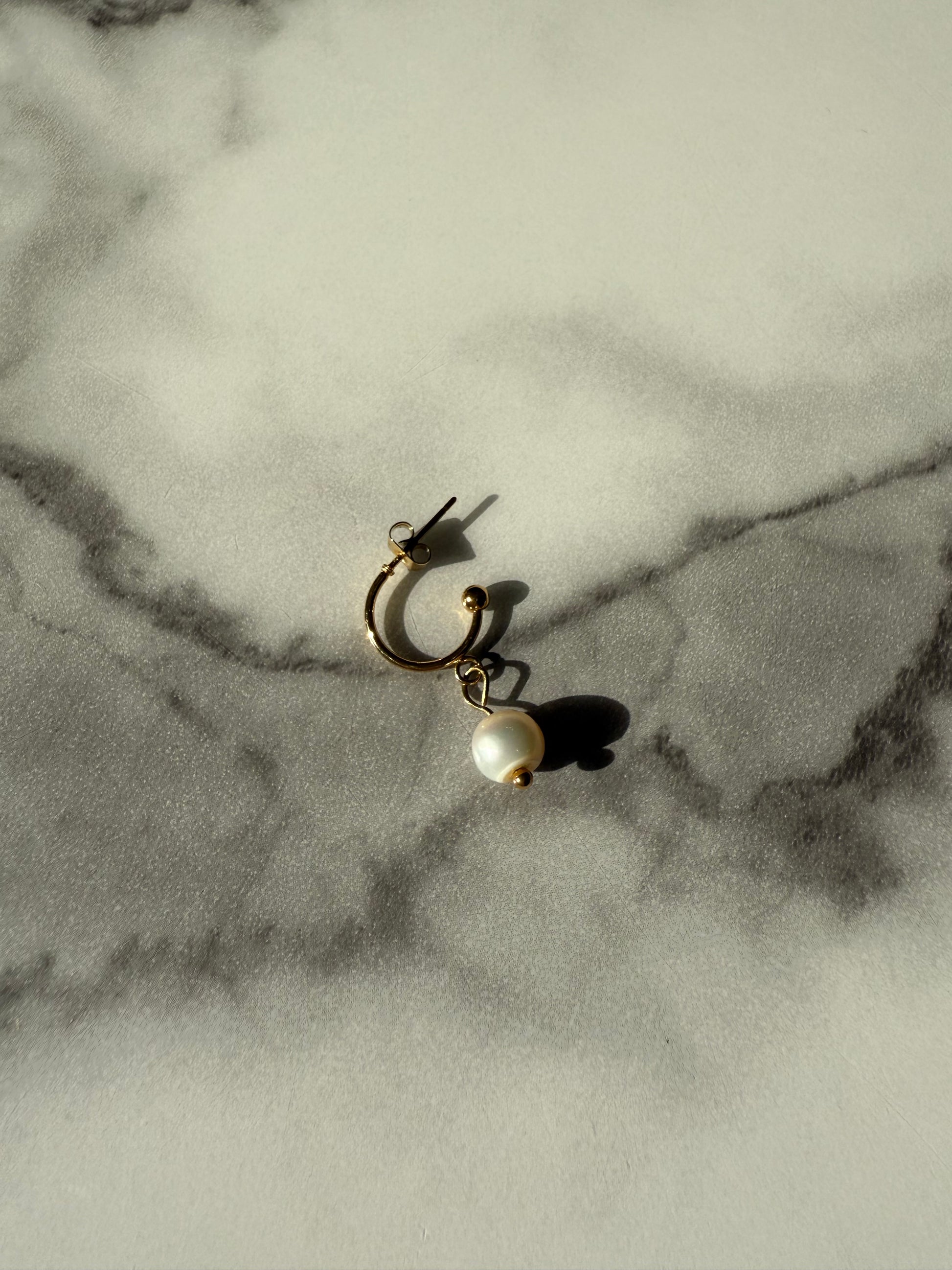 Créole dorée fine, rehaussée d’une perle d’eau douce ronde suspendue.