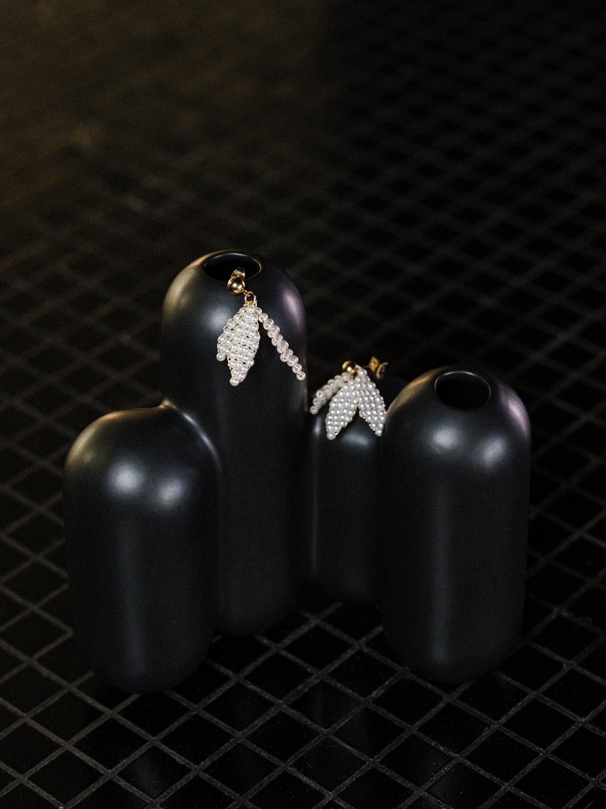 Les boucles Pearls évoquent la délicatesse d’une fleur en pleine éclosion. Composées de pétales de perles blanches, elles sont surmontées d’une perle dorée en acier inoxydable, apportant une touche lumineuse et contemporaine.