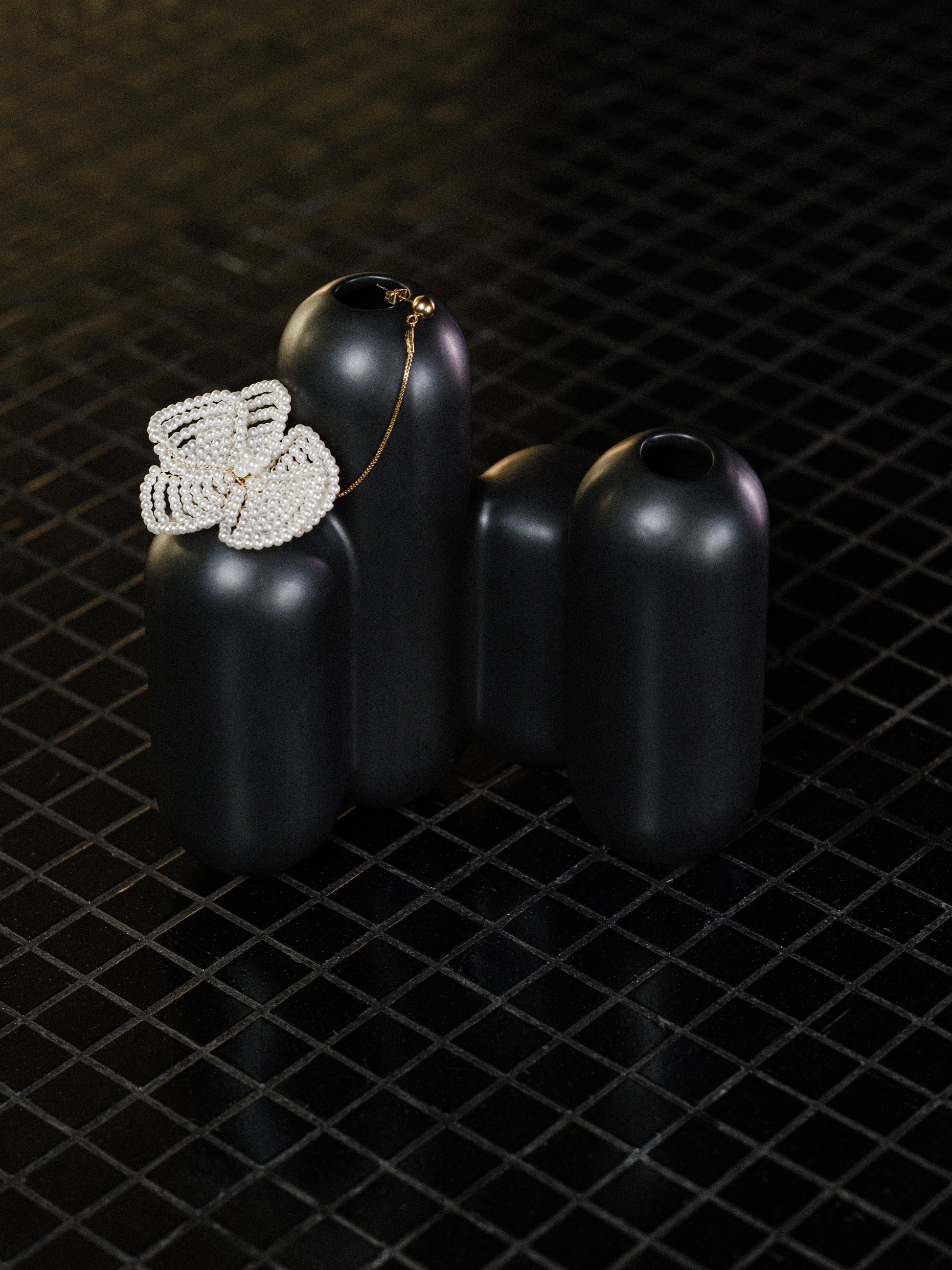Monoboucle PETALS – Fleur de perles & chaîne dorée