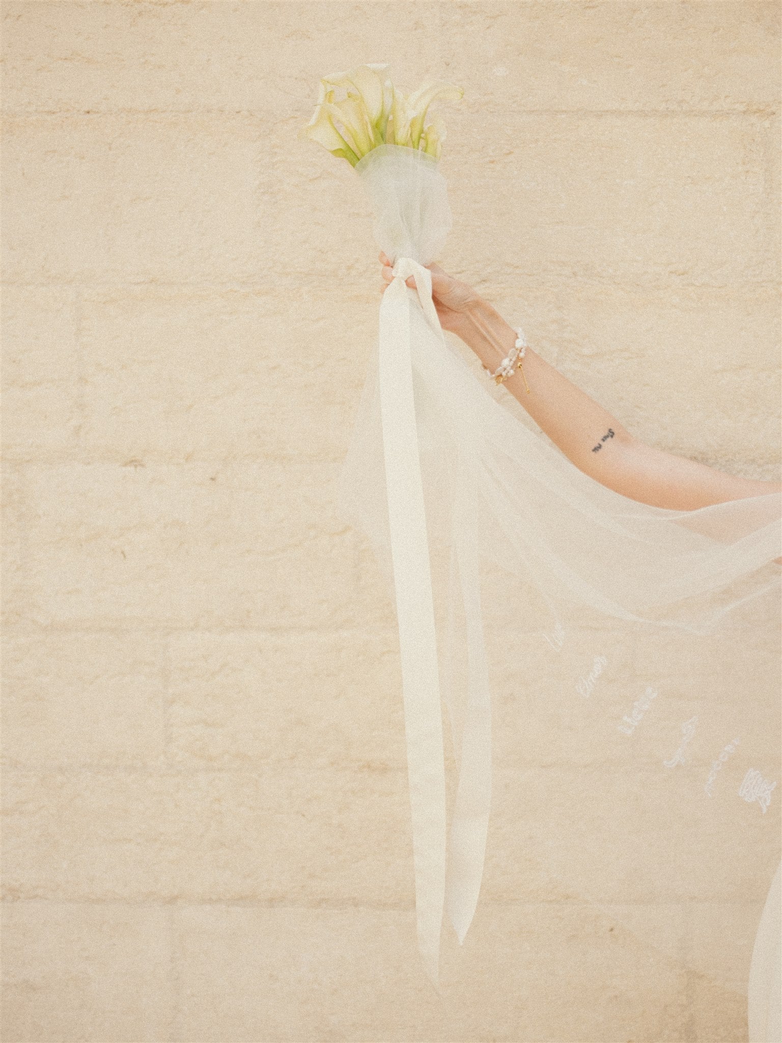 Un voile brodé de mots doux, venu habiller les bouquets d'amour.